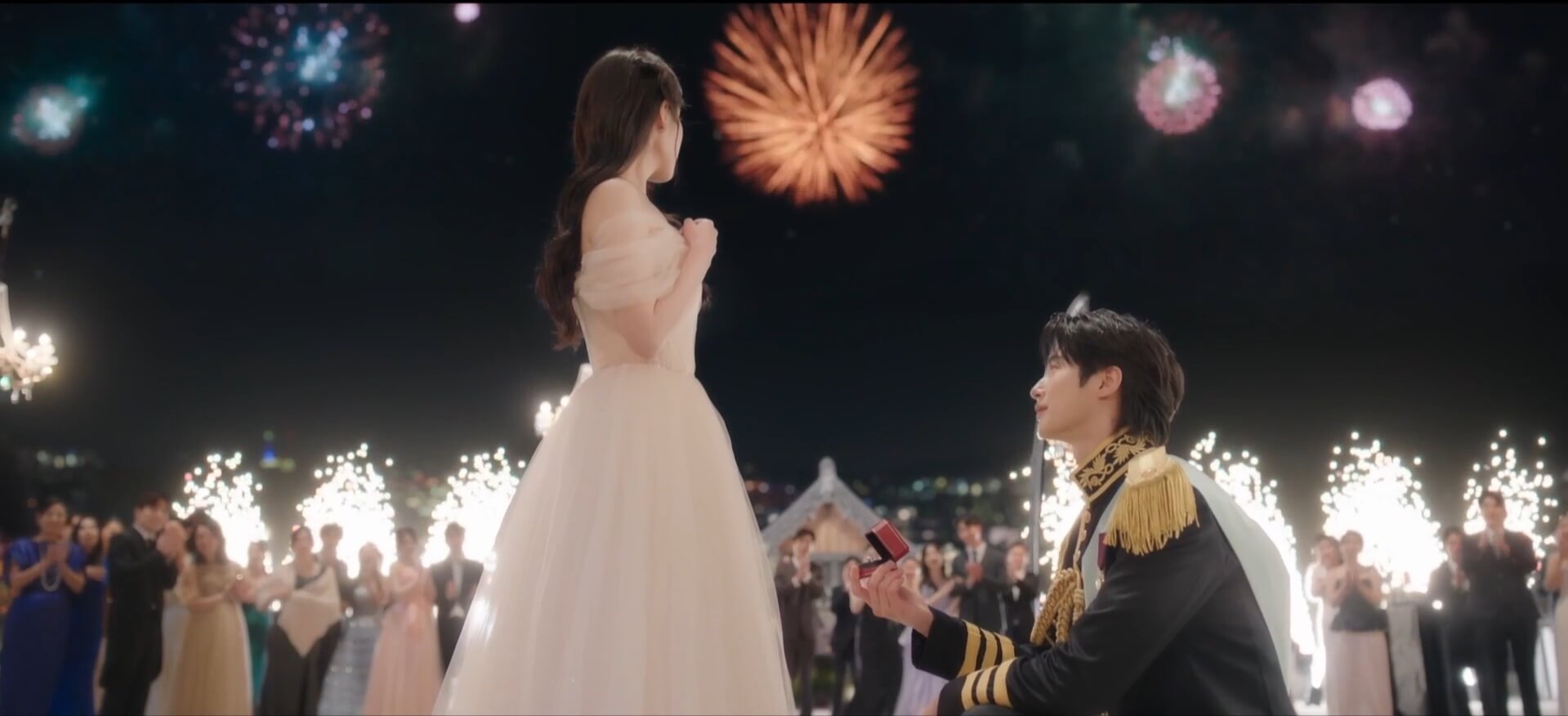 6회의 시작은 화려한 내진연(왕실 연회)이었습니다. 수많은 내빈과 언론의 카메라가 집중된 가운데, 이안대군은 성희주와 함께 우아한 왈츠를 추며 등장했습니다. 모두가 두 사람의 관계를 의심하고 견제하던 그 순간, 이안대군은 희주에게 무릎을 꿇고 "내 아내가 되어주시겠습니까"라며 공개적으로 프로포즈를 감행했습니다.